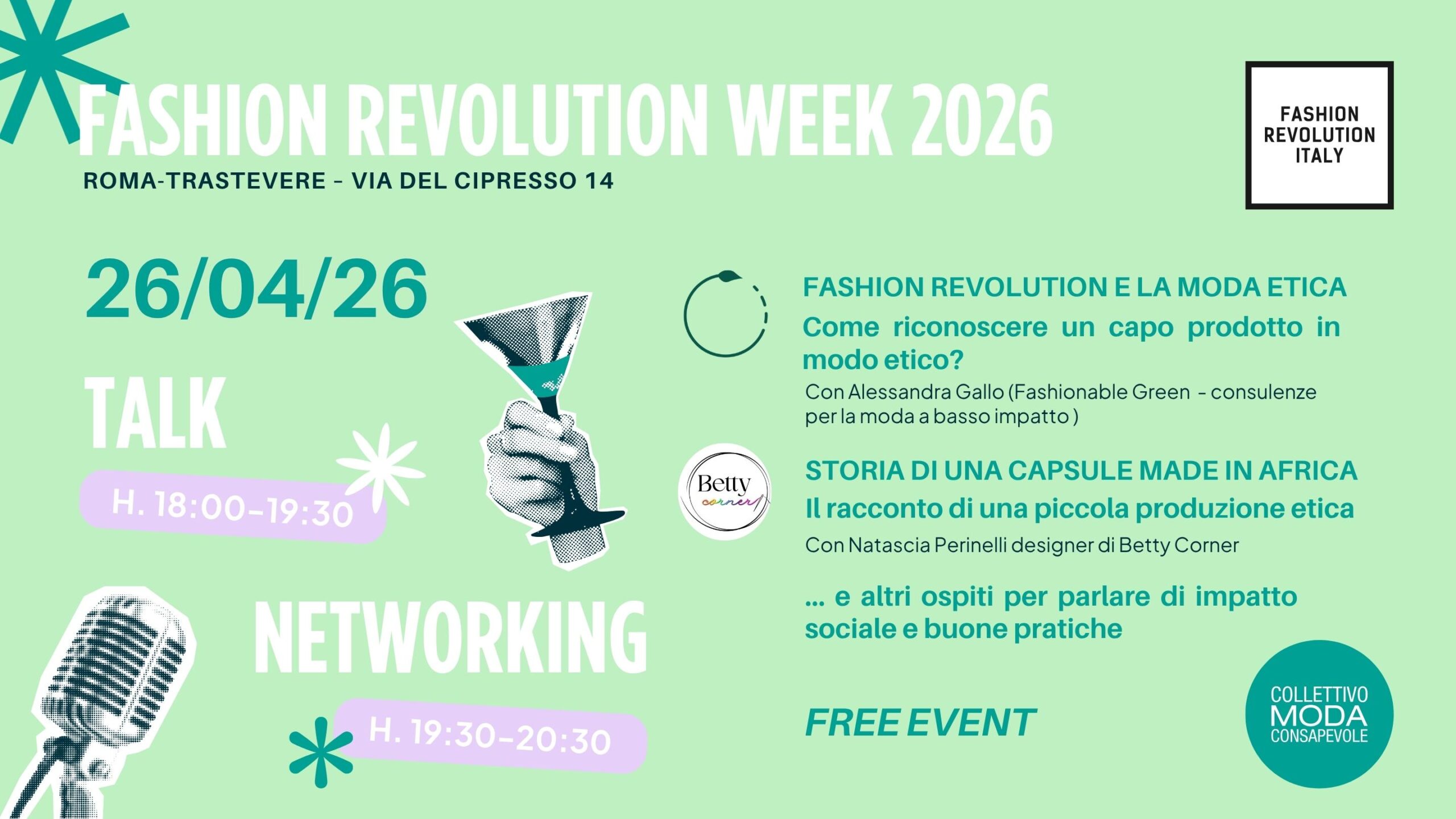 Collettivo Moda Consapevole Fashion Revolution Week 2026 nel 💚 di Roma TRASTEVERE