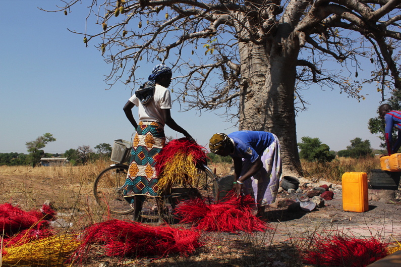 Handcrafted is the A A K S brand philosophy and production is rooted in traditional weaving techniques passed down from generations of iteration. The body of each bag is hand-woven by weavers from the Northern Region of Ghana in a small tranquil town called Bolgatanga. The woven body is then transported to the main A A K S studio in Kumasi, where the linen and cotton linings are sewn, buckles are hand stitched, and leather straps are secured to complete the bags. Following a final quality check, the bags are then shipped to 27 worldwide partner stores, including Anthropologie and Urban Outfitters.