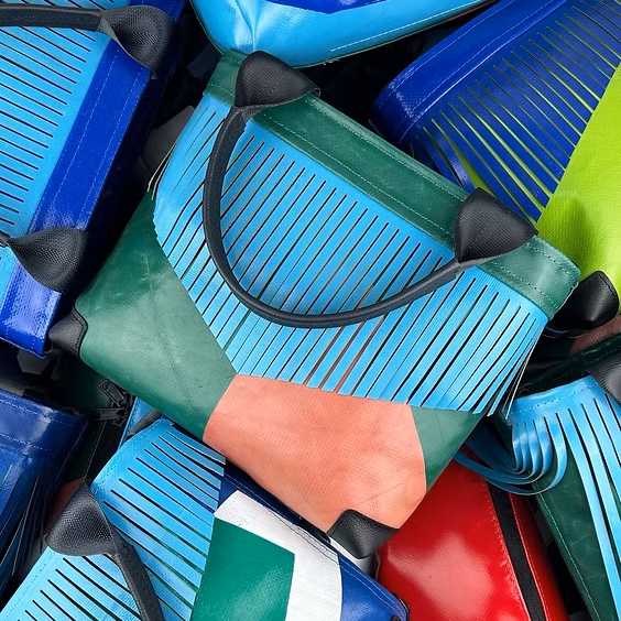 R-Coat, community-based project and brand to reduce waste. We transform broken umbrellas collected by the community into new pieces: the canopies into high-quality fashion garments and accessories and the metal frames into beautiful jewellery.